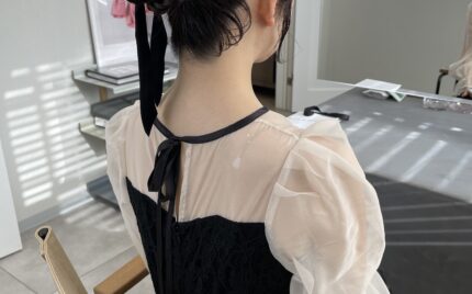 シニヨンを低めではなく袴に合わせてバランス良く見えるように、少し高さを出しています